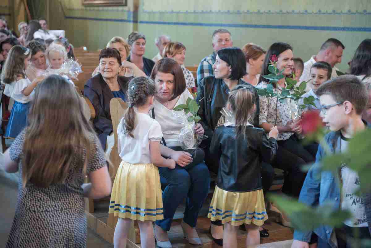 W montażu słowno – muzycznym, wierszami, piosenkami i czułymi słowami dzieci pokazały jak bardzo kochają swoje Mamy. Młodzi wykonawcy nie zapomnieli również o najważniejszej Matce – Przenajświętszej Panience, przed której obrazem oddali pokłon i dziękowali za opiekę Bożą. Dopełnieniem uroczystości były upominki oraz kwiaty złożone na ręce rodziców oraz wspólne, pamiątkowe zdjęcie wykonane przed głównym ołtarzem naszej świątyni.