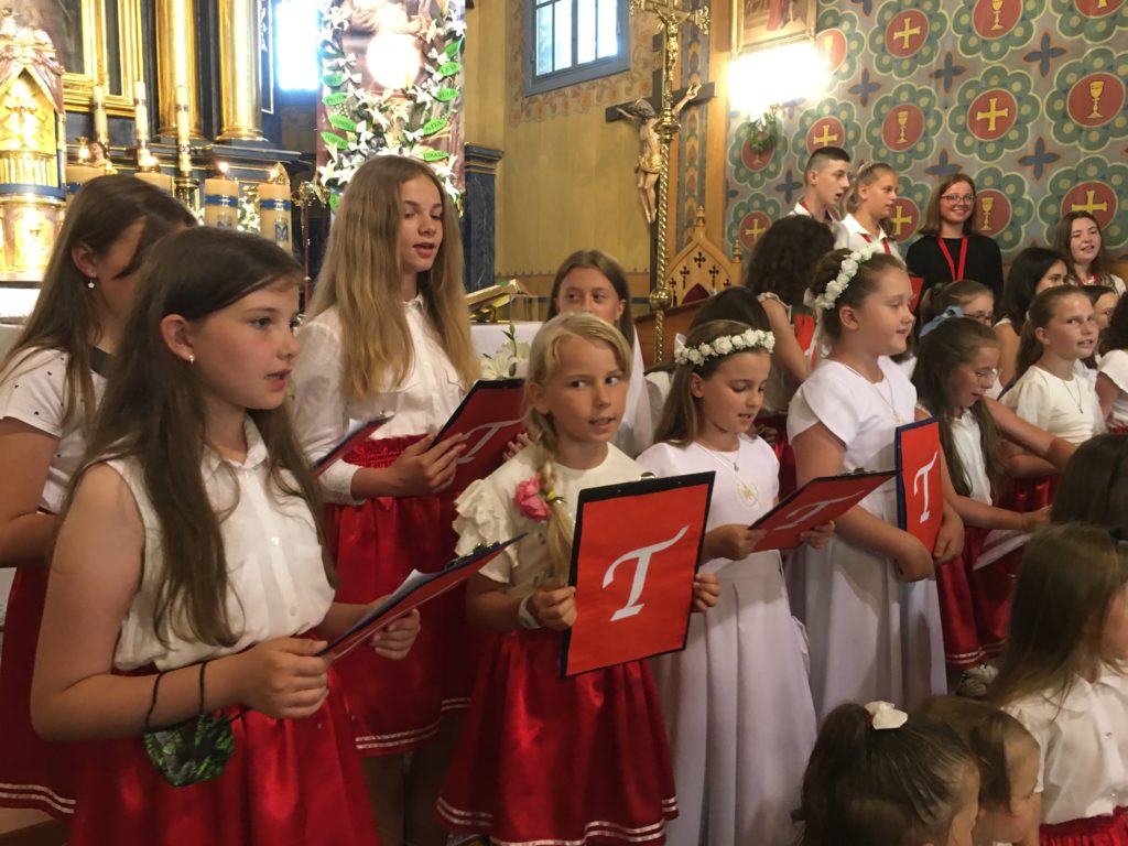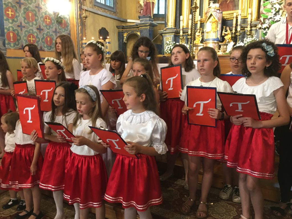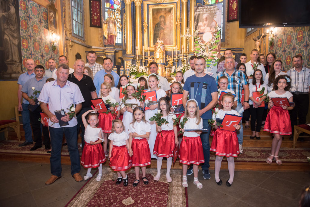 Jak co roku o tym wyjątkowym święcie pamiętały dzieci i młodzież zapraszając honorowych gości na uroczystą Mszę Świętą. Po jej zakończeniu odbyła się część artystyczna. W montażu słowno-muzycznym wierszami, piosenkami i czułymi słowami dzieci pokazały jak bardzo kochają swoich tatusiów. Tego dnia młodzi wykonawcy nie zapomnieli także o najważniejszym Ojcu – Ojcu Niebieskim, któremu oddali cześć i dziękowali za Bożą opiekę, prosząc jednocześnie o błogosławieństwo. Dopełnieniem części artystycznej było wręczenie upominków i kwiatów oraz tradycyjne, pamiątkowe zdjęcie zrobione przed głównym ołtarzem naszej świątyni.