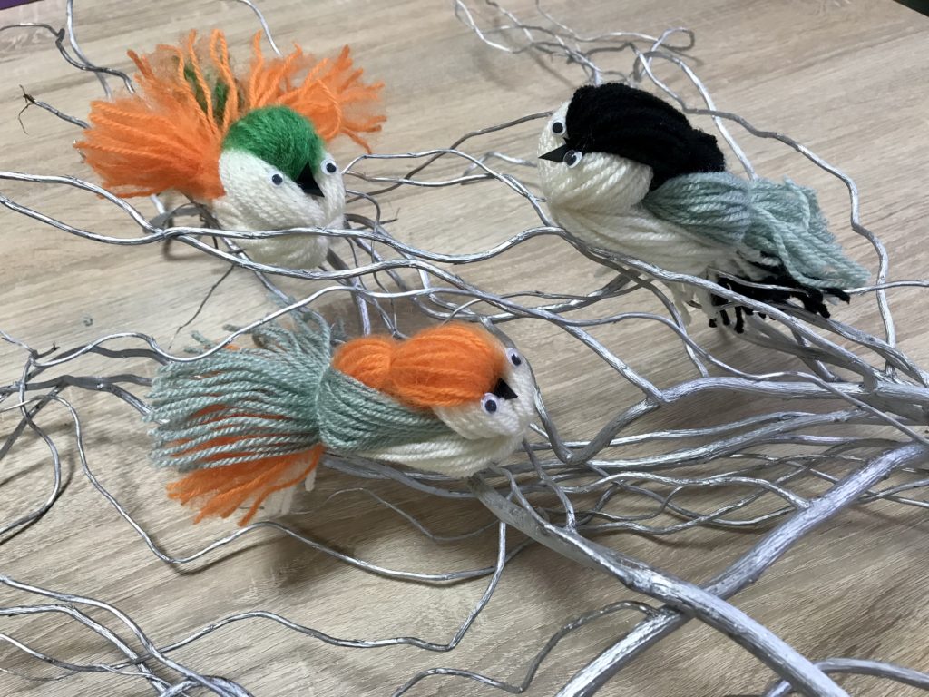 8. Na koniec łączymy wszystkie elementy i związujemy je nitką z wełny.
