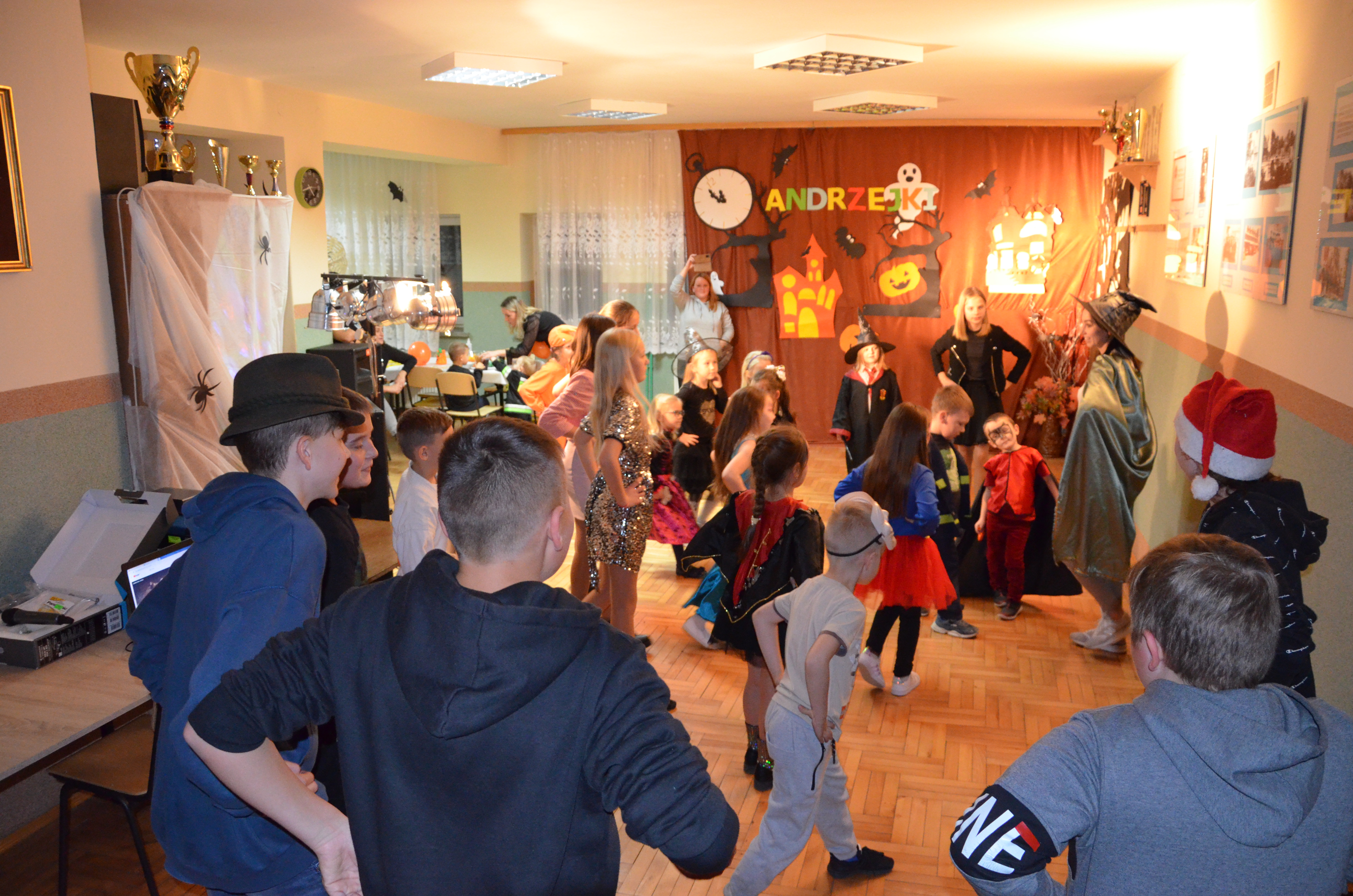 Imprezę ubogaciły zabawy taneczno-ruchowe przygotowane przez panią Maję – instruktorkę tańca.  Do naszych magicznych atrakcji należało również malowanie twarzy, którym zajęła się pani Jadwiga Satoła. Dzieci mogły współtworzyć swój wymarzony makijaż nawiązujący kolorystyką do naszych andrzejkowych klimatów. Nasze spotkanie zakończyło się występami grup kabaretowych prowadzonych przez instruktora pana Piotra Musiała.