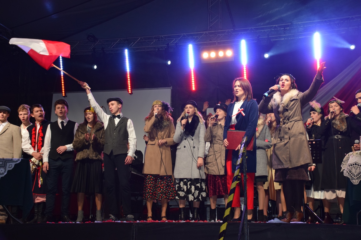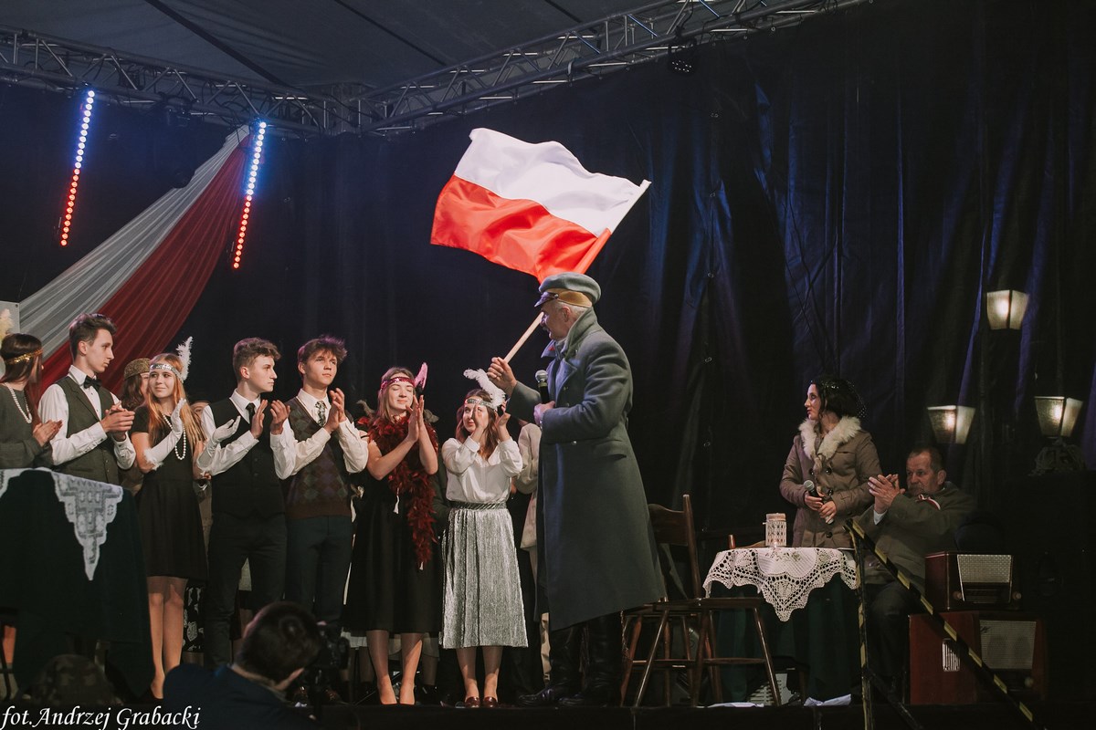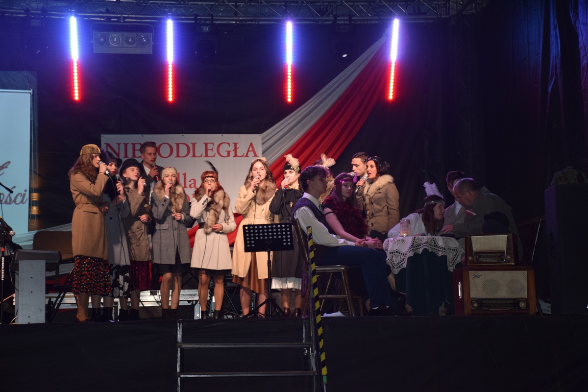 Przedstawiona przez komentatora p. Edwarda Klejdysza trudna droga Polski do odzyskania niepodległości przeplatana była wzruszającymi wykonaniami piosenek tamtych lat przez zespoły działające przy Centrum Kultury : MIRŚ, Cud i Przyjaciele (soliści: Joanna Biernat, Szymon Ciszek, Marzena Palka), Chór Seniora, Gitara się Ma. Gościnnie wystąpili raperzy Konrad Zając i Adrian Stanek. W tło historyczne wpleciony został wzruszający epizod miłosny. W role zaborców, żołnierzy i tęskniących żon wcielili się tancerze z Zespołu Pieśni i Tańca „Łapanowianie”. Wszystko to odbyło się w scenerii lat 20 i 30.