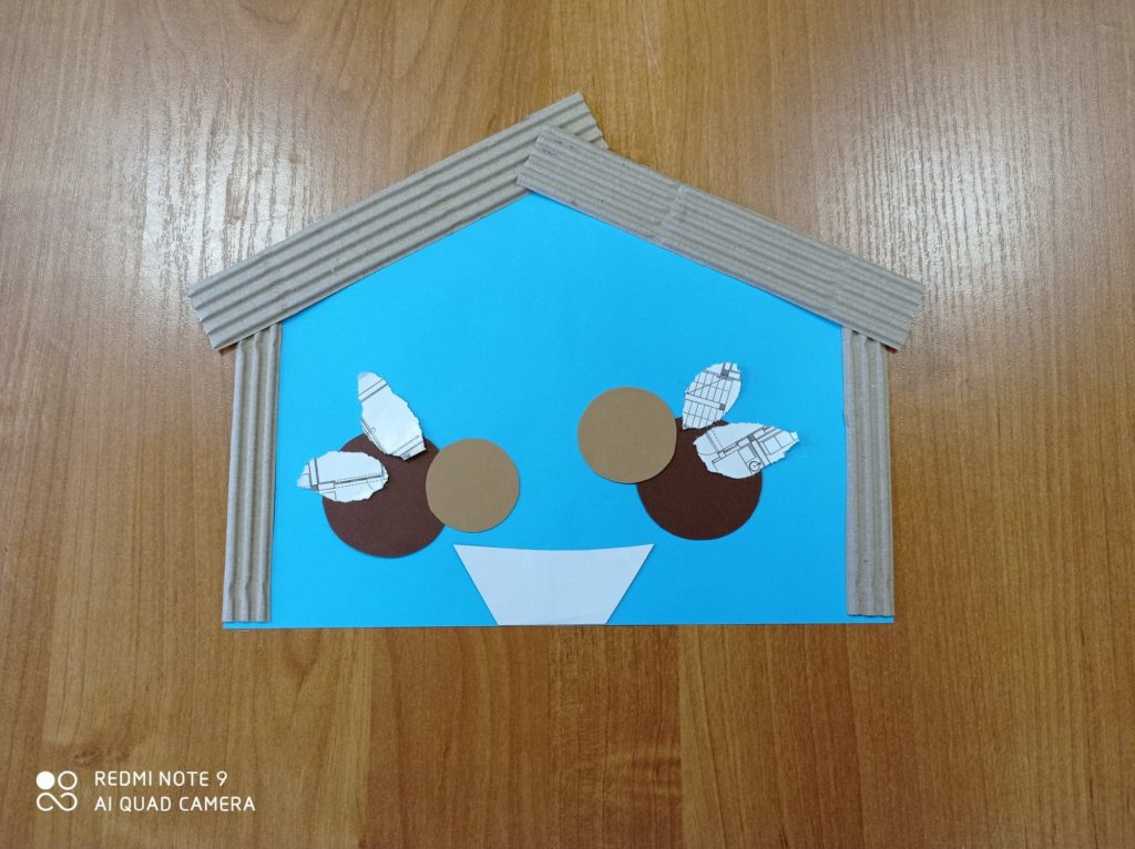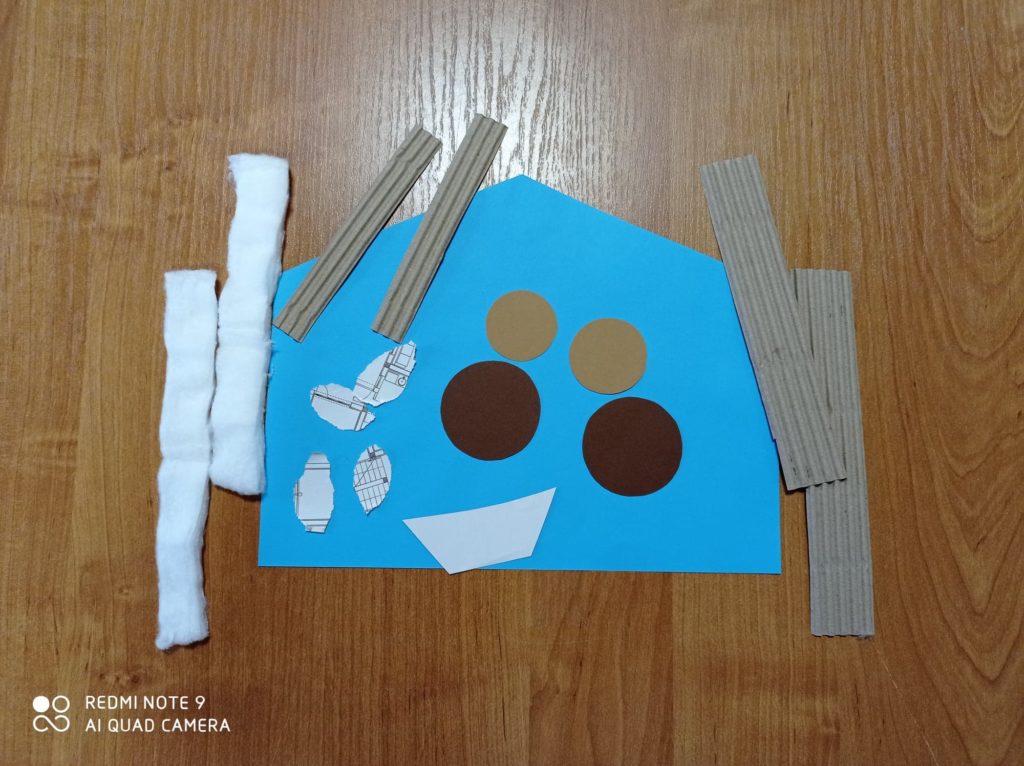 Paski z waty naklej na daszek, by wyglądał na odśnieżony.