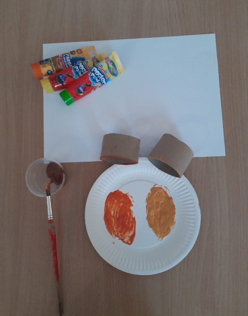 Na talerzyk nałóż żółtą i czerwoną farbkę.