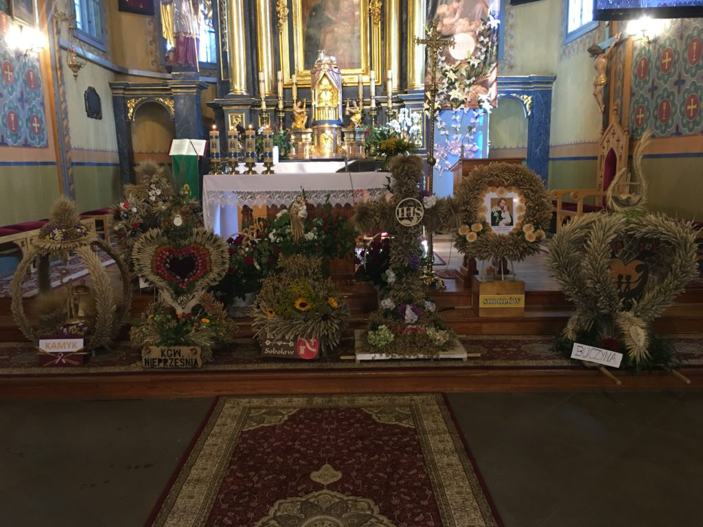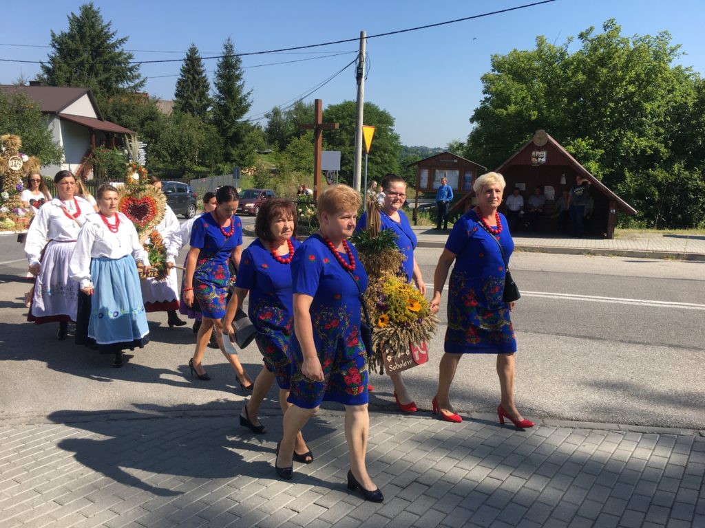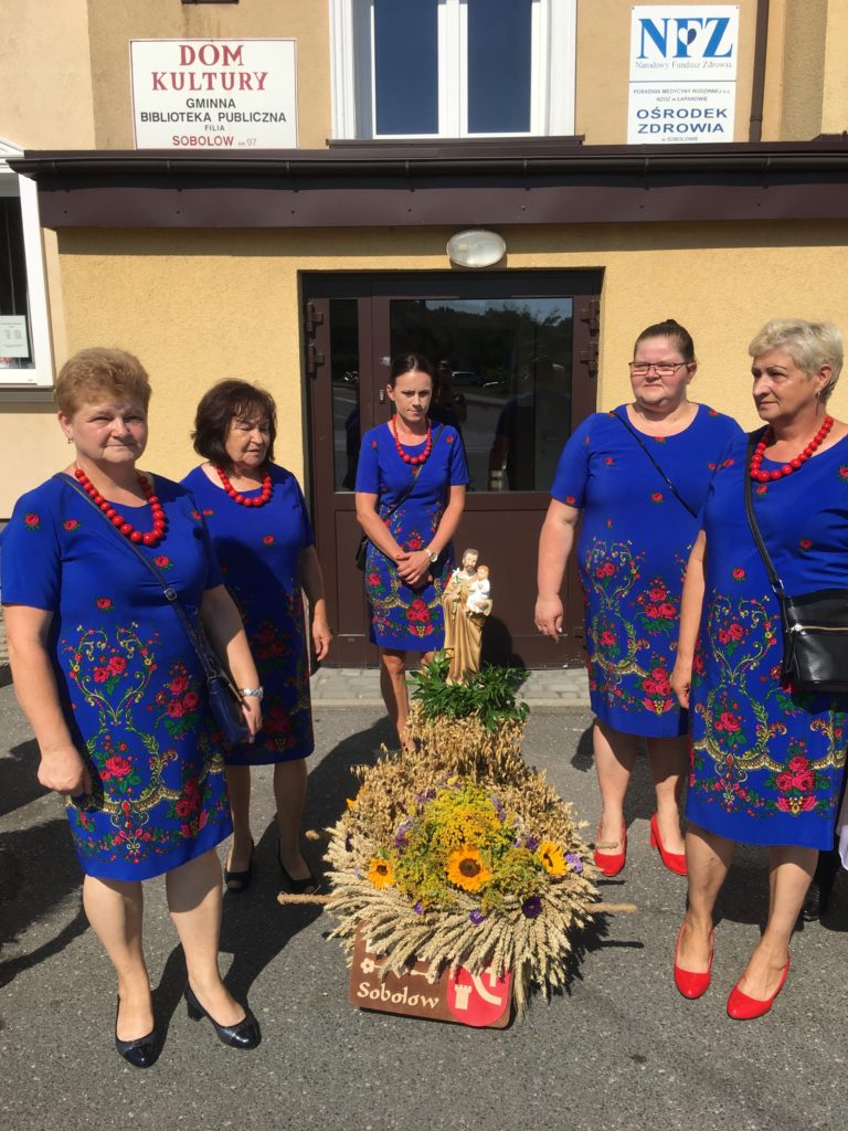 15 sierpnia przychodzi czas na wspólne świętowanie – czas dożynek parafialnych. Jak co roku pięknej oprawie dożynkowej towarzyszył barwny korowód, w którym brały udział dzieci z zespołu „Promyczki” , koła gospodyń wiejskich, delegacje z poszczególnych wiosek oraz Orkiestra Dęta Sobolów pod kierunkiem Stanisława Chmielka.