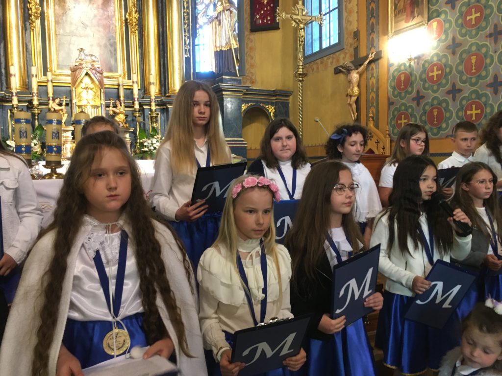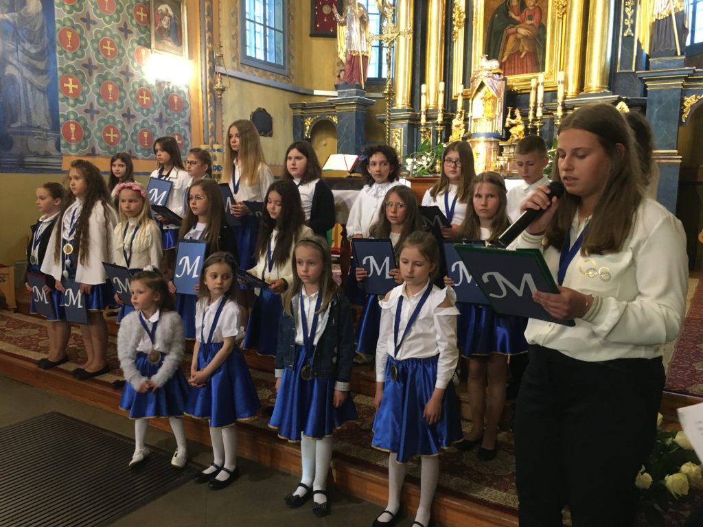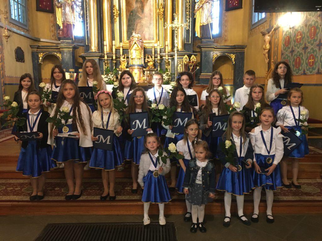 Święto to przypomina nam jak ważne są nasze Mamy oraz, że każdej Mamie należy się moc uścisków, buziaków i tysiąc kwiatów za jej bezwarunkową miłość. W tym ważnym dniu honorowi goście zostali zaproszeni na nabożeństwo majowe, po którym odbyła się część artystyczna. W montażu słowno-muzycznym, wierszami, piosenkami i czułymi słowami dzieci pokazały jak bardzo kochają swoje Mamy. Młodzi wykonawcy nie zapomnieli także o najważniejszej Matce – Przenajświętszej Panience, przed której obrazem oddali pokłon i dziękowali za opiekę Bożą. Dopełnieniem tej pięknej uroczystości były złote medale oraz kwiaty.