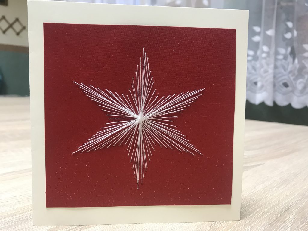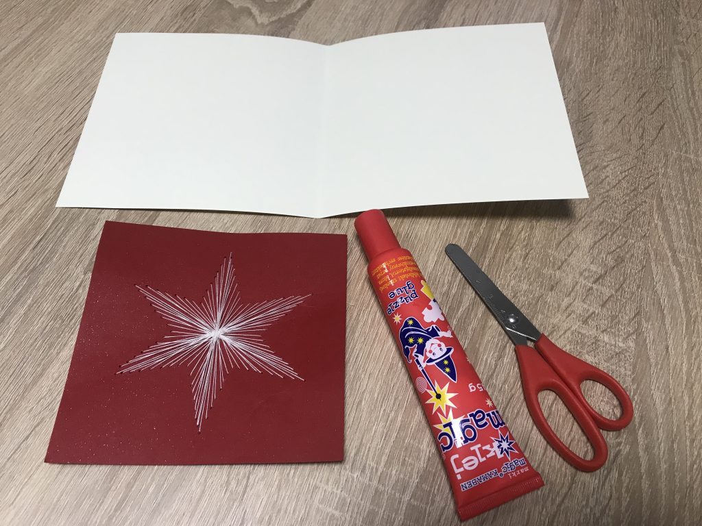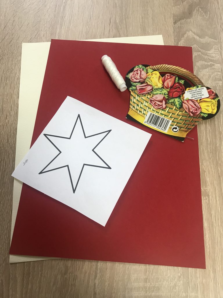 - arkusz A4 sztywnego papieru np. z bloku technicznego lub wizytówkowy, na którym wyszyjemy gwiazdkę,