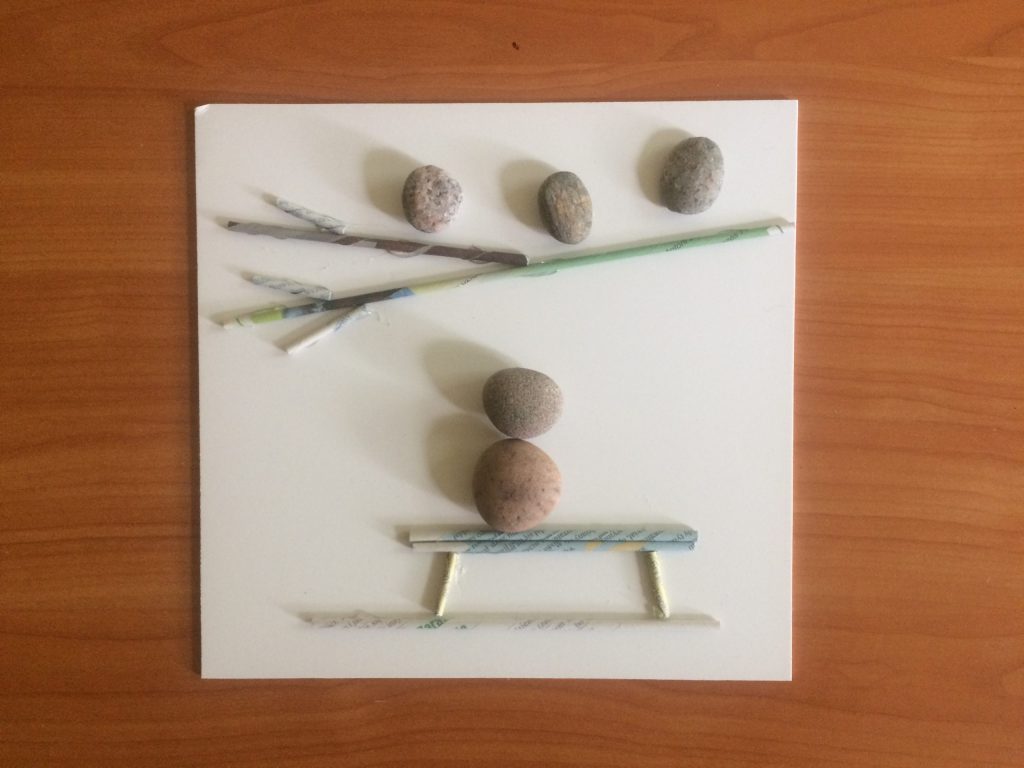 Obrazek z kamykówPotrzebujesz: kamyczki, suche gałązki, sznurek to naturalne materiały, z których możesz ułożyć dowolne kompozycje.
